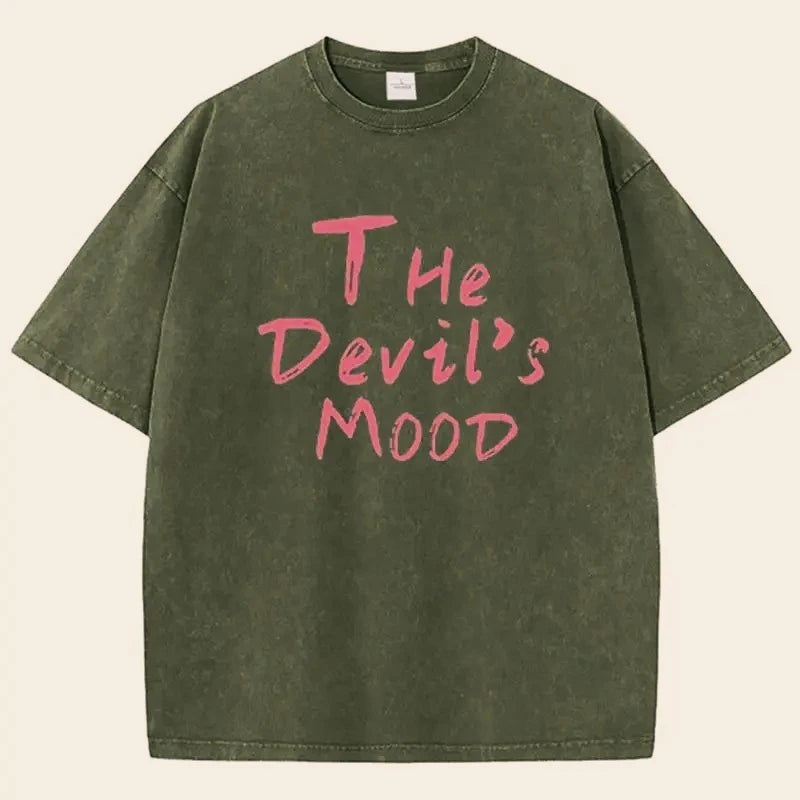 Fashion Womans Cotton Washed T-shirts The Devil's Moon Letter Prints Tops Casual O-Neck Oversize Tees Street Female Clothes